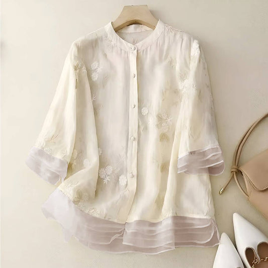 Embroidered Cotton Blouse Breathable Floral